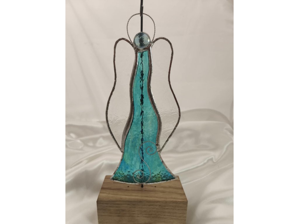 Objevte kouzlo našich ručně tvořených skleněných andělů, kteří jsou vytvořeny technikou tiffany. Každý anděl je unikátní kousek, který dodá vašemu domovu dotek elegance a spirituality. S rozměry cca 22x9 cm a dekorativní spirálkou z pocínovaného drátu jsou tito andělé nejen krásným, ale i stylovým doplňkem. Vybírejte z různých barev.