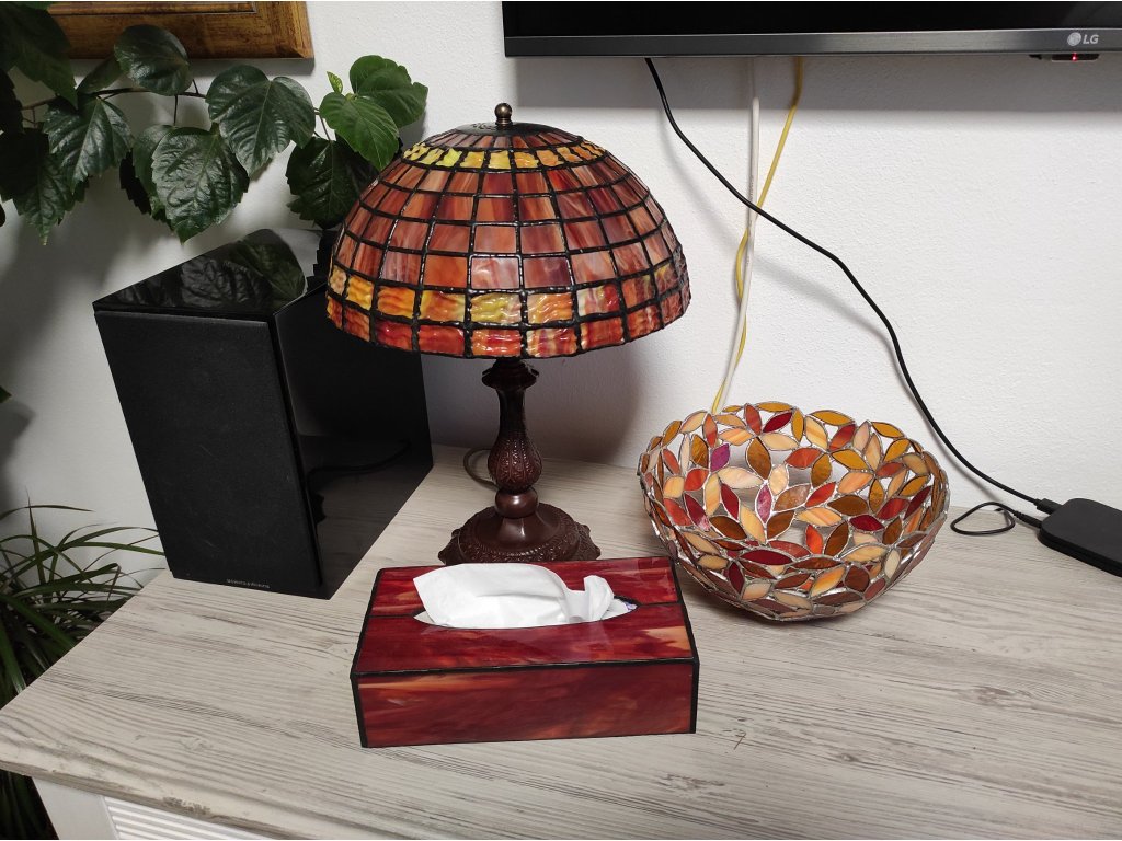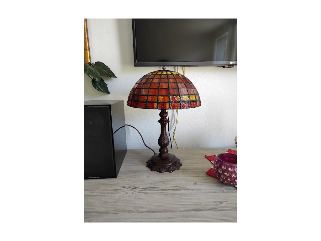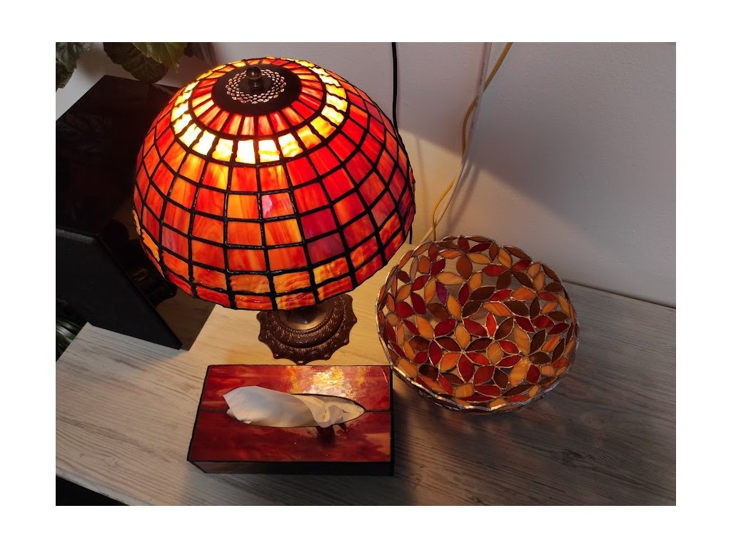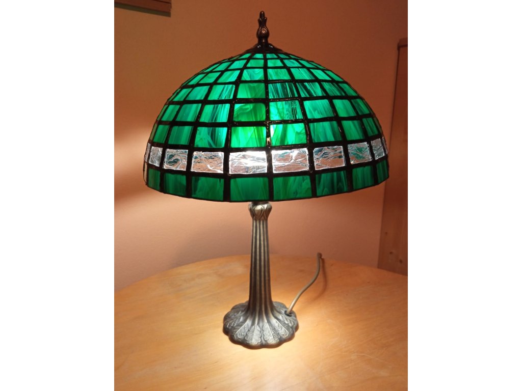 Skleněná lampa Geometrie, která je ručně vyráběna klasickou technikou tiffany.