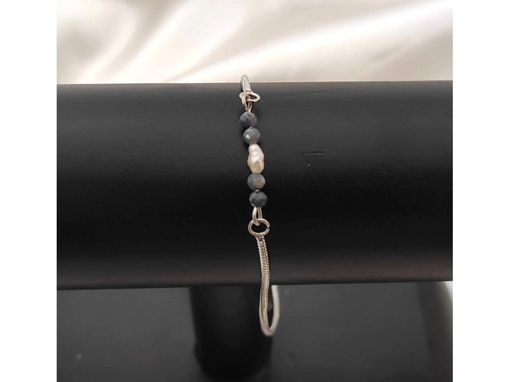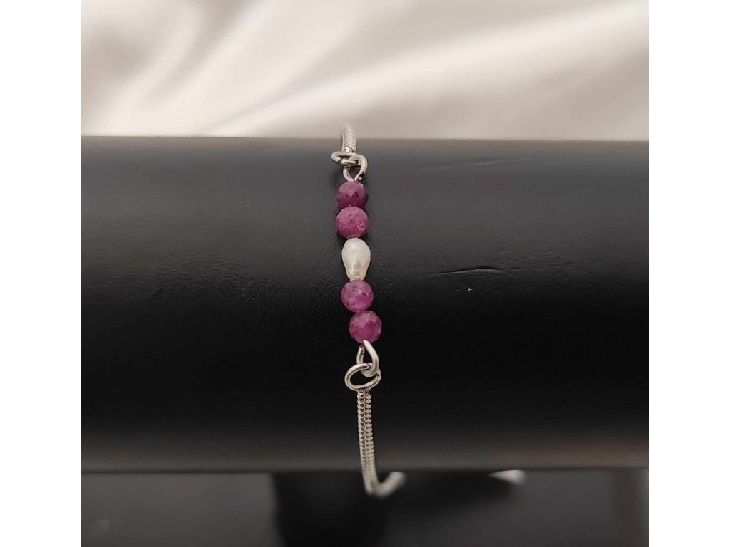 Jemný stahovací náramek z chirurgické oceli s říční perlou, rubíny nebo safíry